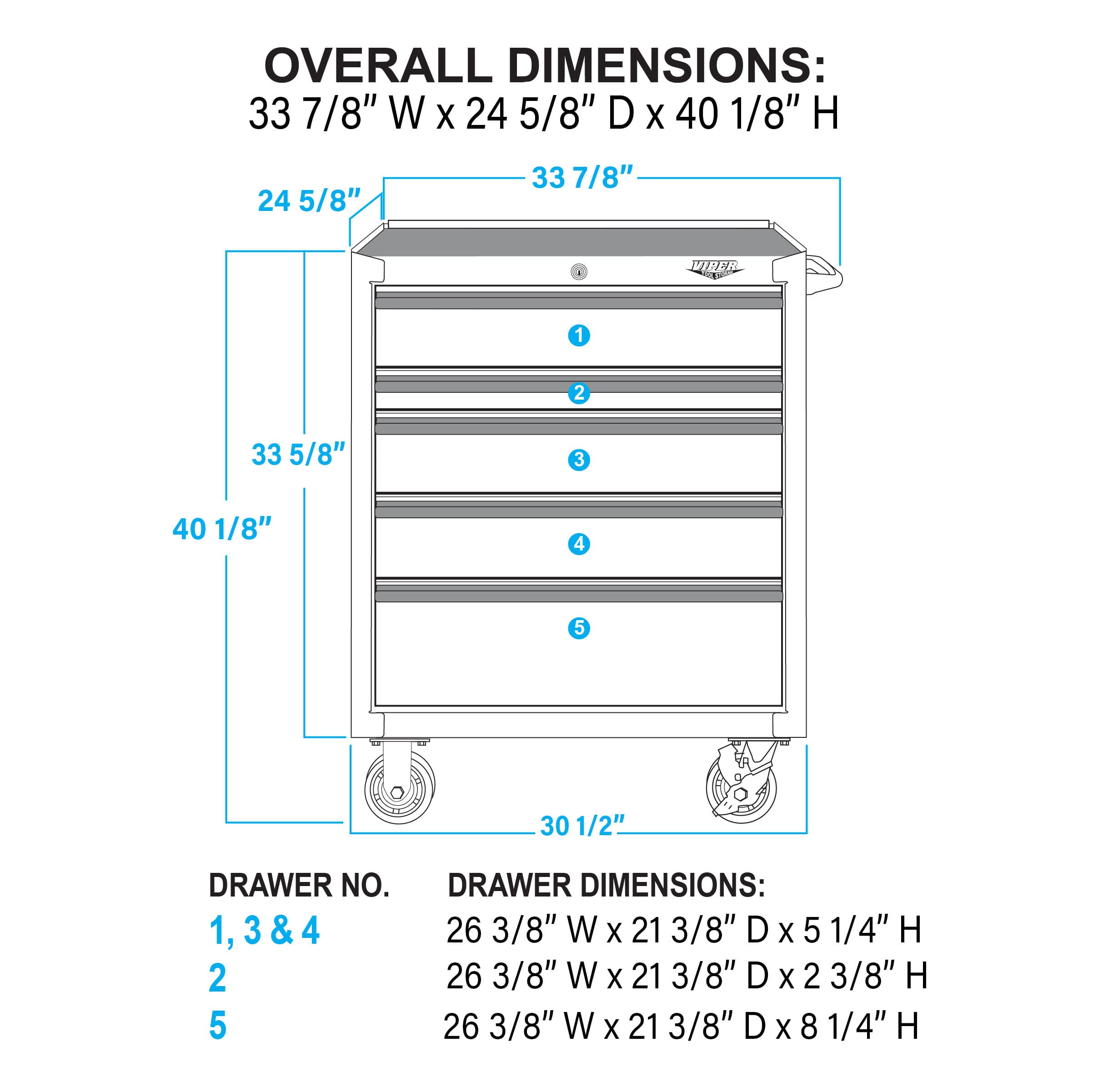 Premium Series 30-Inch 5-Drawer 18G Steel Rolling Cabinet